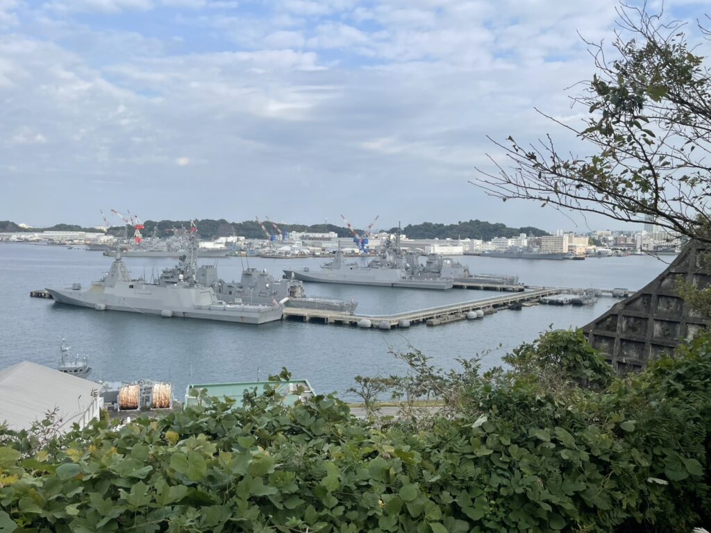 安針台の公園から手前自衛隊の艦船。