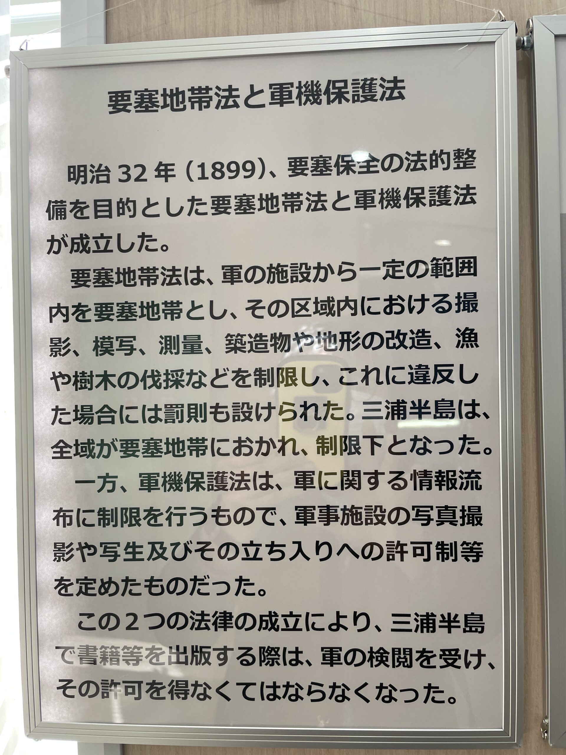 このようなことがなぜ、まかり通ったのか。「沖縄スパイ戦史」の中では研究者も何人も出てくるのだが、その中の先生は「軍機保護法」をあげていた。そういえば、昨年、横須賀市中央図書館で「20世紀前半の横須賀と出版」というまとまった展示がおこなわれた。その際すべての展示を撮らせてもらったので、「要塞地帯法」も含め関係した画像をアップしておこうと思う。